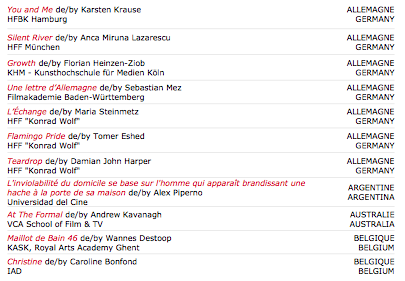 Le mois de décembre est décidément bien chargé en festivals. La ville de Bruz, à proximité de Rennes, accueille du 7 au 13 décembre le festival national du film d’animation, avec deux sections compétitives, celle des films d’écoles et celle des films professionnels. Voici la première, munie de son détail, déterminée par un comité de sélection composé de Jean-Yves de Lépinay, Jérôme Descamps et Guillaume Bourrachot.