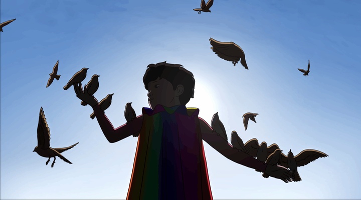 L’animation 2D joue également un rôle central dans l’identité du film. À l’heure où ce style est souvent délaissé au profit de la 3D, Arco en rappelle toute la force expressive. Le film déploie une grande richesse visuelle, notamment dans le travail de la lumière et dans la conception de ses différents univers. On reconnaît clairement l’influence du parcours d’Ugo Bienvenu dans la bande dessinée : la mise en scène privilégie souvent des plans fixes, de légers panoramiques proches de la logique de la case, ou encore de délicats travellings. Ce rythme visuel plus contemplatif laisse le temps d’observer les détails et de pleinement apprécier la composition des images.