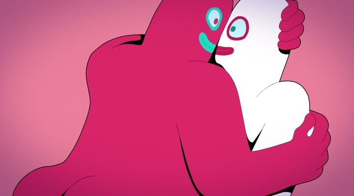 NF : En fait, je voulais que les câlins soient au coeur du film.  Je ne voulais pas que d’autres choses viennent parasiter ce thème. Les personnages sont donc impersonnels. Ils sont asexués, ils n’ont pas de couleur de peau particulière. C’est pour ça qu’ils sont rouges, jaunes, verts, blancs… Ils n’ont pas d’attributs particuliers pour déterminer à quelle classe sociale ils appartiennent. Il n’y a pas de décor non plus.