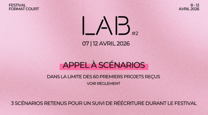 Appel à scénarios ! Le Festival Format Court accueillera son 2ème Lab lors de sa prochaine édition (8-12 avril 2026, Studio des Ursulines, Paris, 5). Dès aujourd’hui, le 16 février, vous pourrez y candidater, dans la limite des 60 premiers projets reçus.